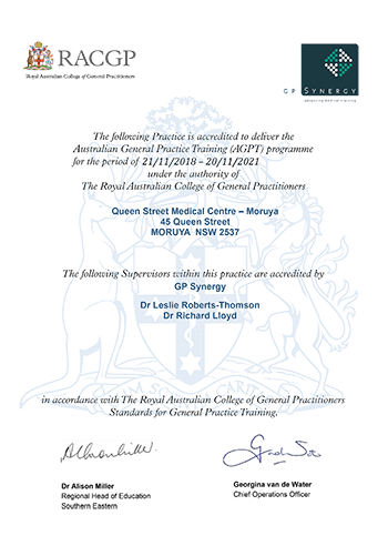 Our practices at Moruya and Broulee meet the stringent standards of Accreditation set by the Royal Australian College of General Practitioners. Queen Street Medical Centre staff and independent doctors, are committed to providing the highest standards of patient health care and service – underpinned by our practice mission to provide access to appointments for our patients.
